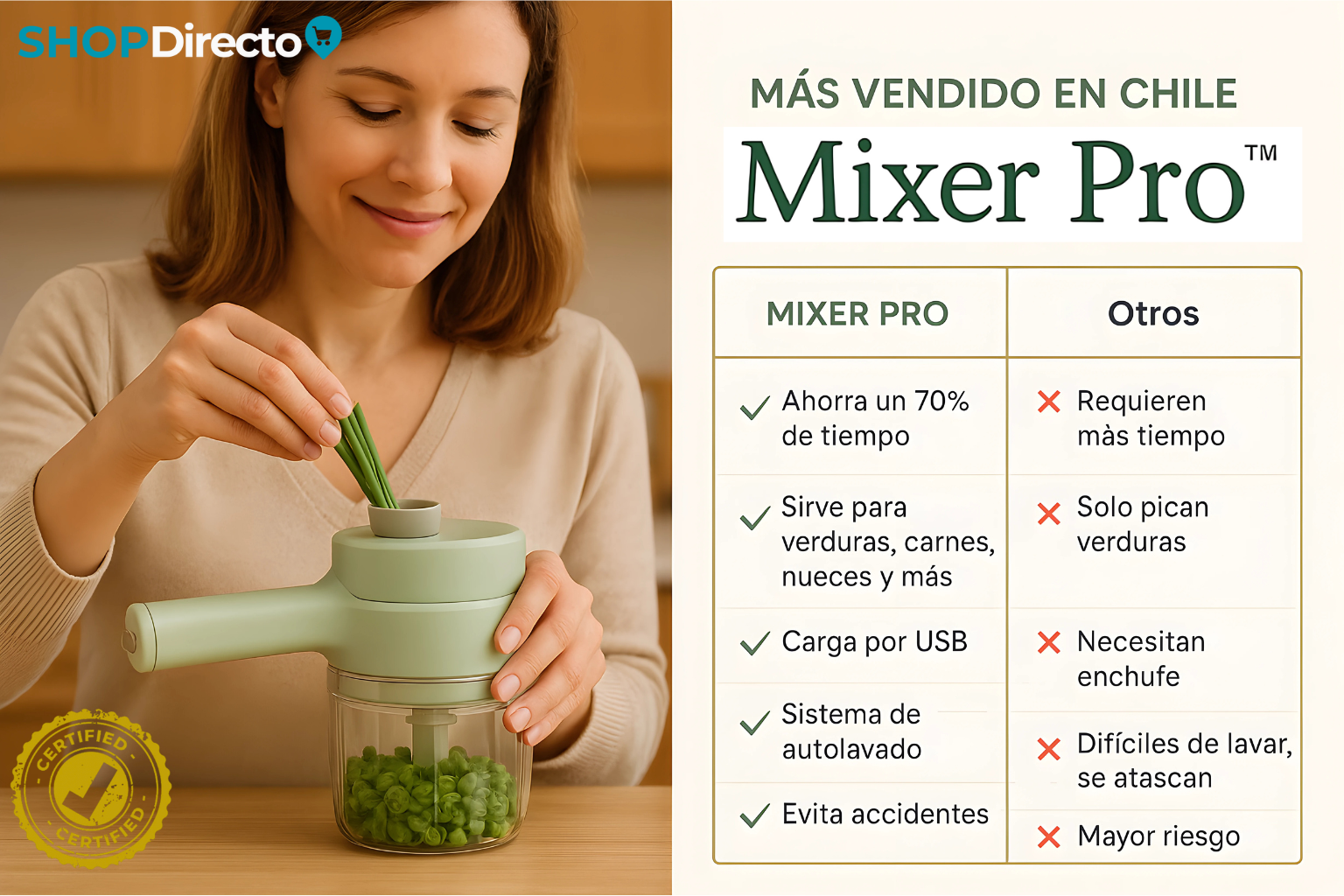 - 🥗 Versatilidad total – Perfecto para picar carne, pescado, nueces, verduras, frutas y mucho más.